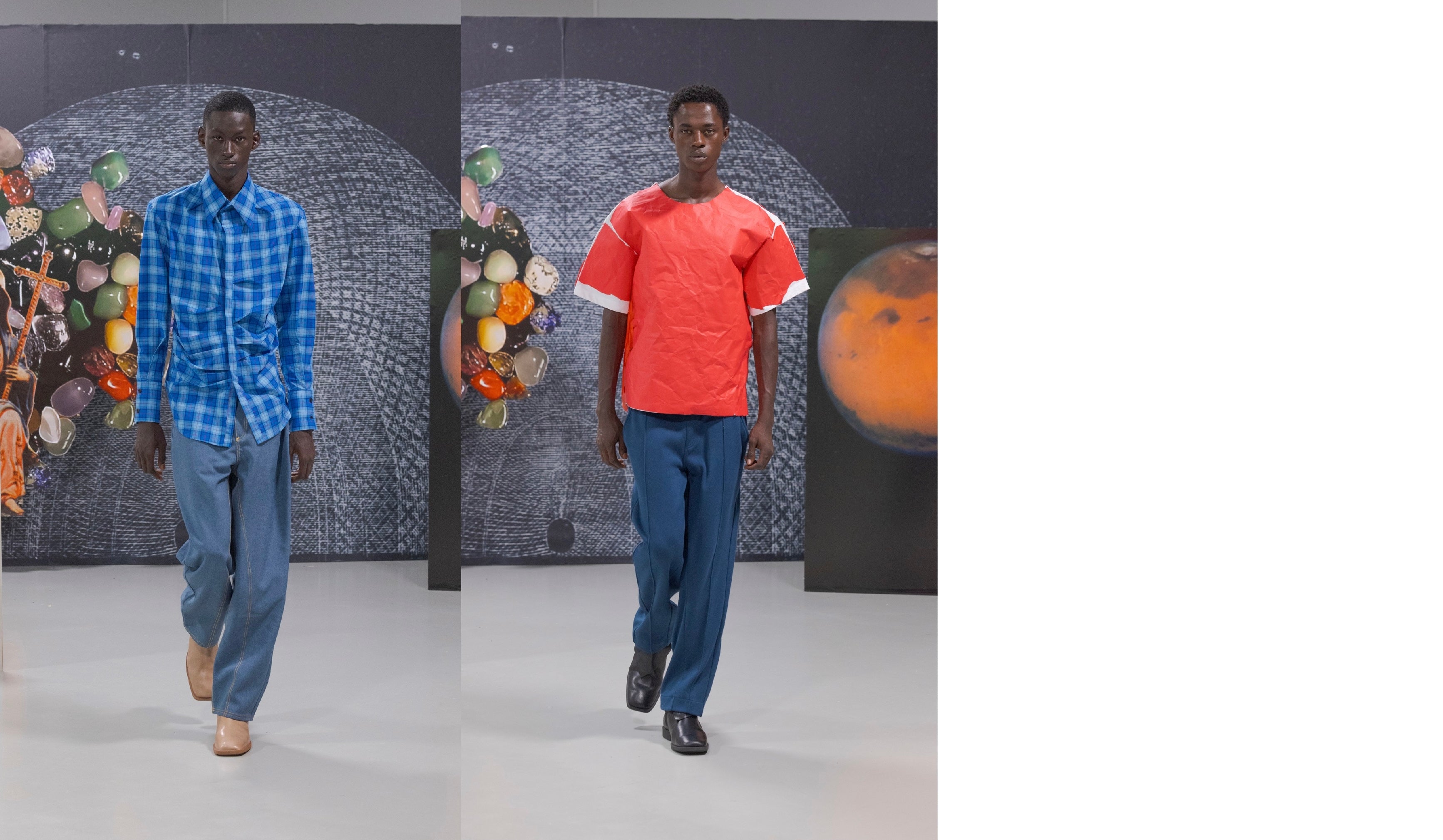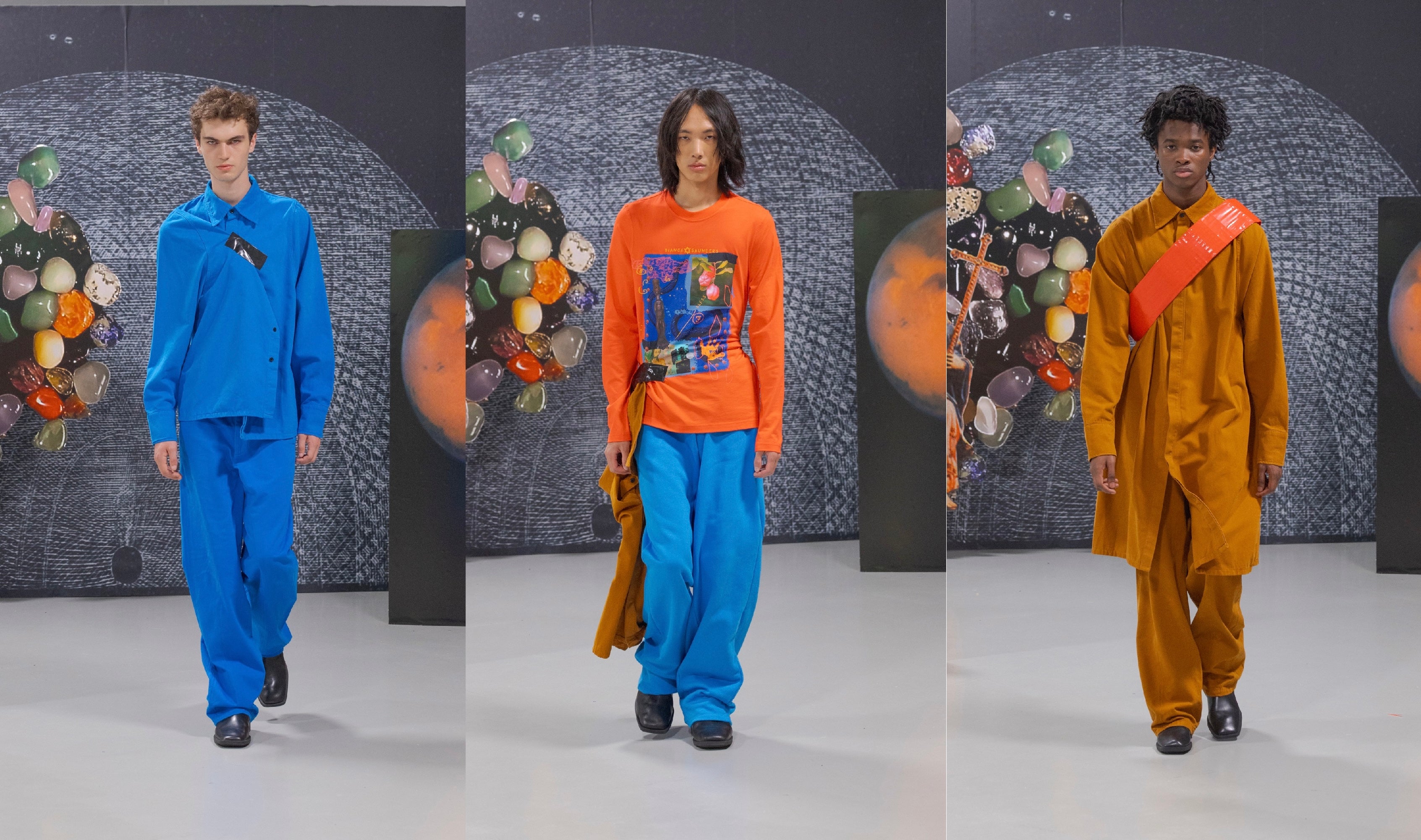 Bianca Saunders proudly presented her SS24 collection ‘SCRATCH’, inspired by the idiosyncratic world of multi-hyphenate Jamaican musician and producer Lee “Scratch” Perry – a legendary artist and fashion icon whose influence extends far beyond sound, and into the realms of art, fashion and culture.