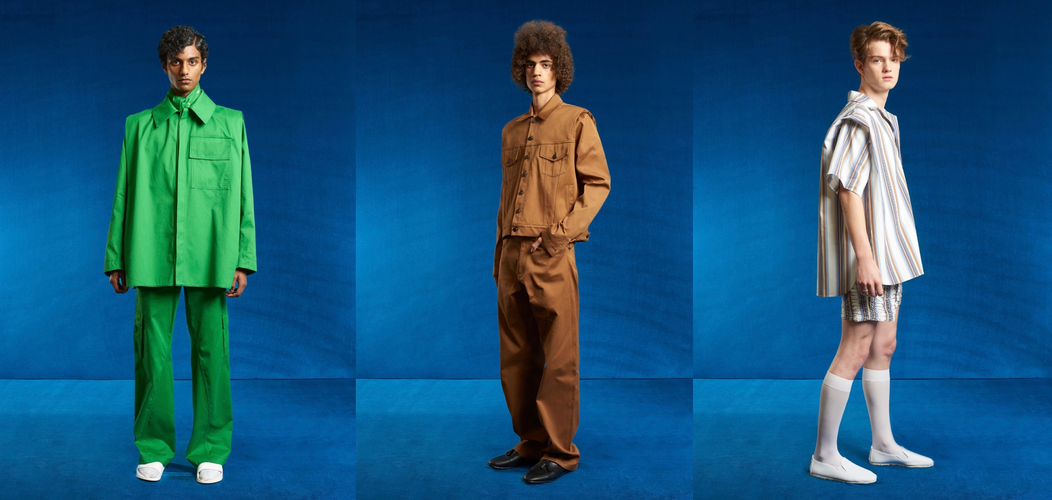 Bianca Saunders delves into the SS21 concept of "The Ideal Man" for PF21, exploring cut, fluidity, and character in clothing. She maintains fluidity and movement in PF21, refining her signature shoulder tucks and introducing lightweight tailoring and denim innovation. New printing techniques create texture on denim. Rich colors like malachite green and deep navy appear in the collection. PF21 was presented during GucciFest, where Saunders continued her exploration of masculine identity in a film inspired by Spike Lee's "She's Gotta Have It," featuring models discussing relationships and personal preferences. Saunders' work centers on character development and an aspirational vision for her customer.