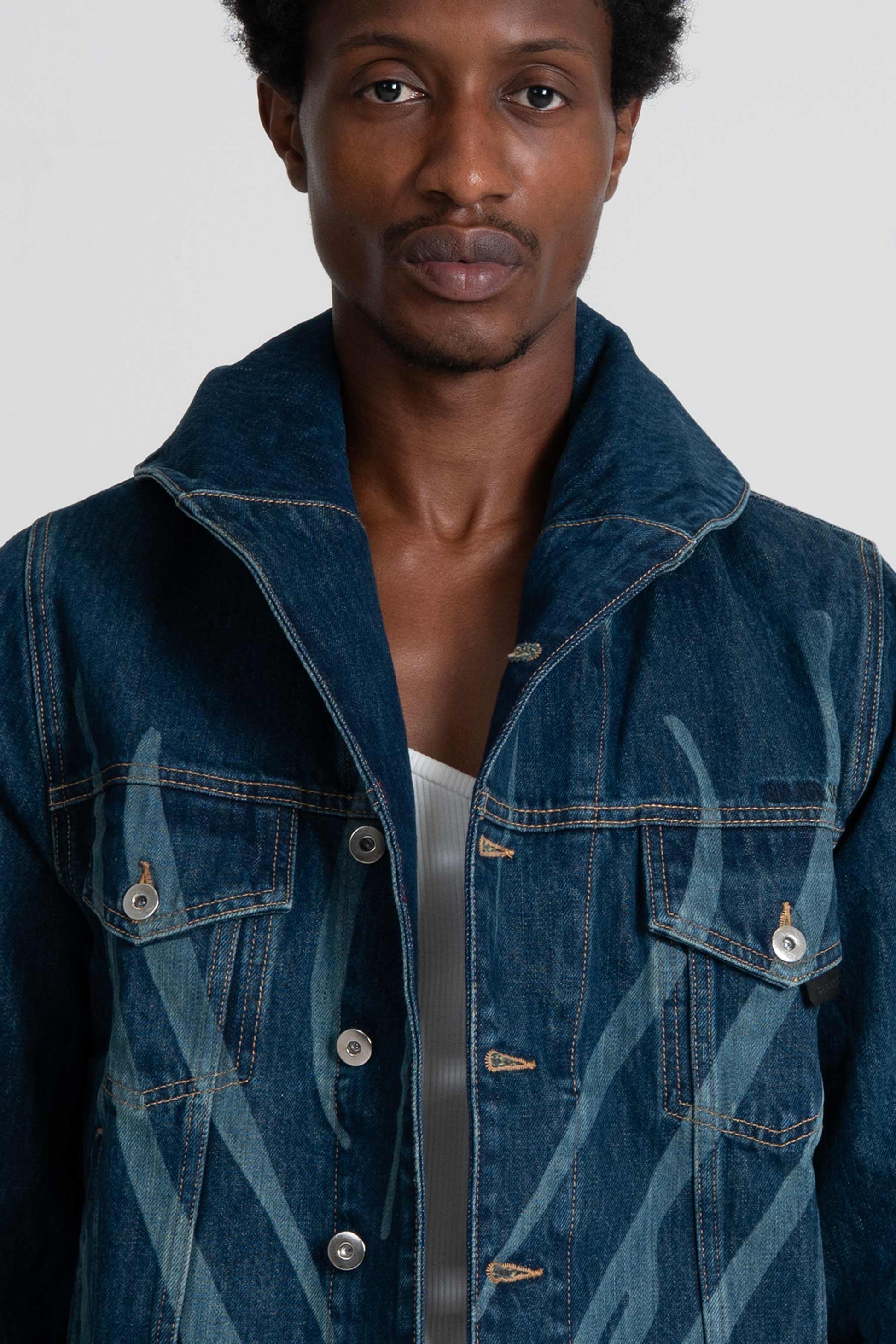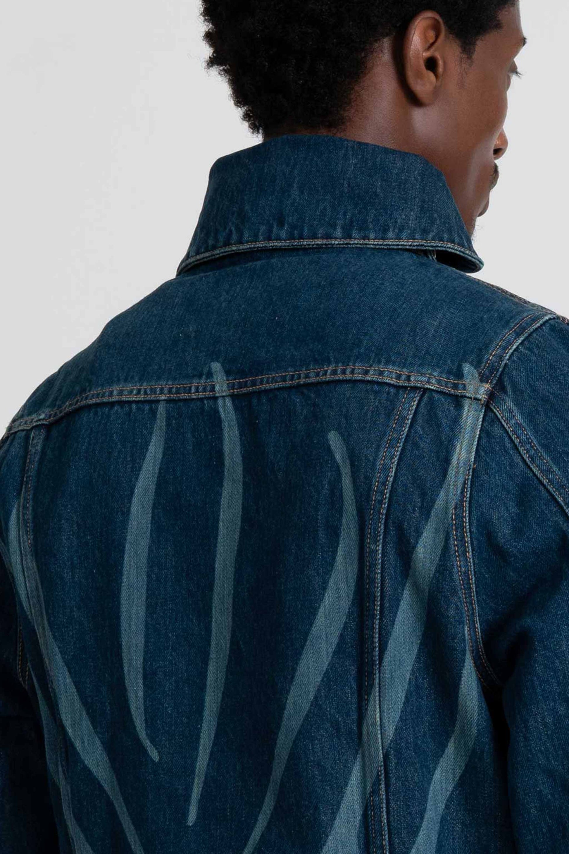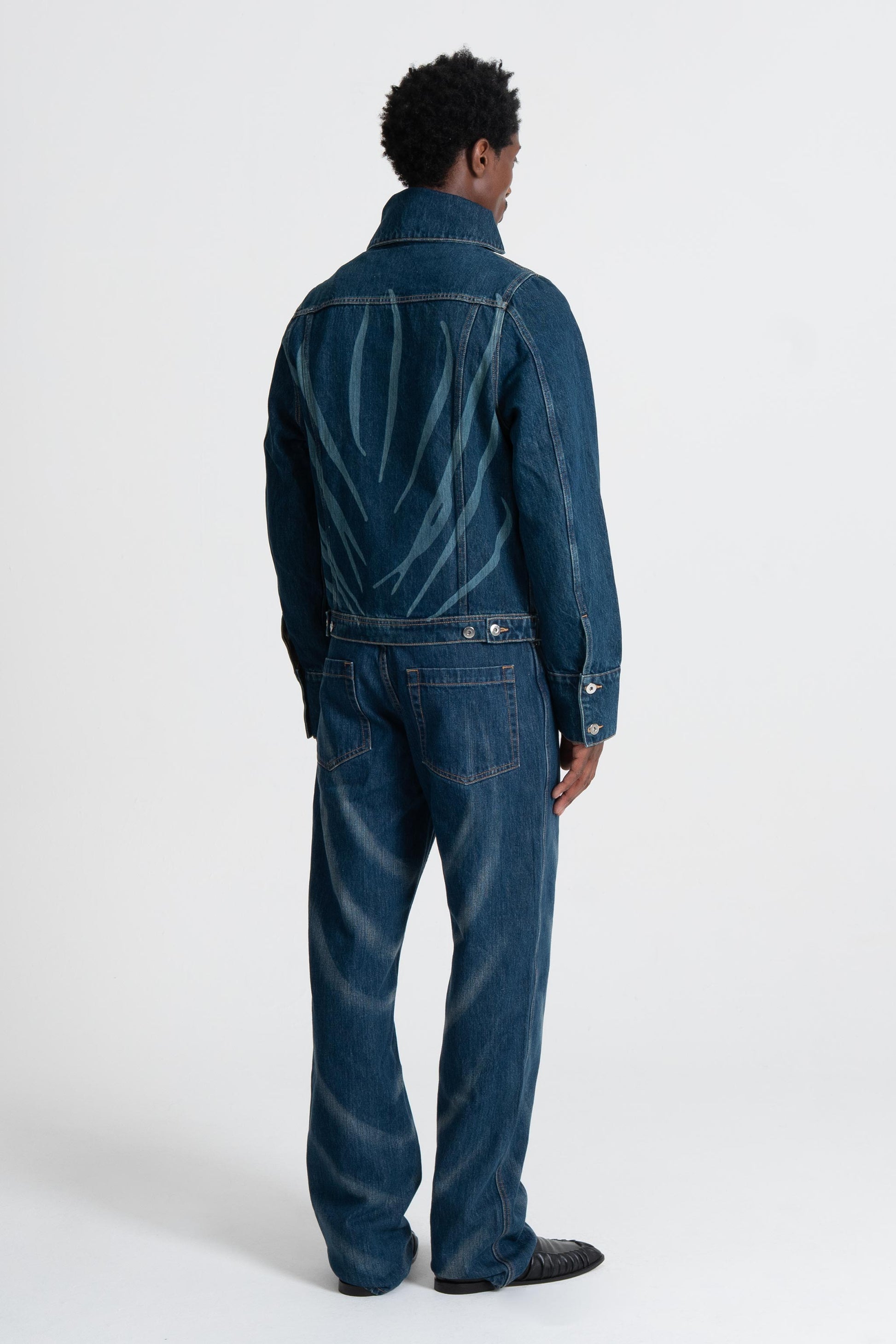 The Grass Jacket is a modern take on a denim classic. Cut from structured panels, it offers a sharp silhouette balanced with Bianca Saunders’ signature detailing—like the extended shawl collar and chest patch pockets, one of which features the logo. Silver-tone shank buttons and adjustable back tabs complete the design for a customisable fit.